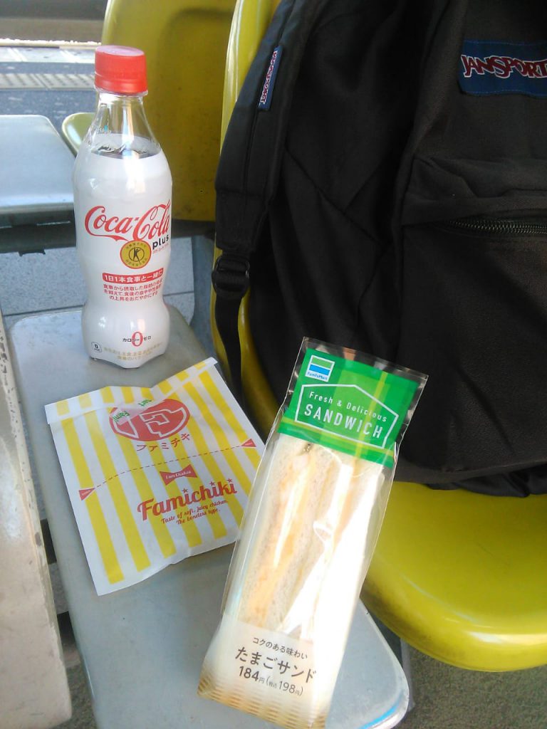 Yo elijo siempre el sándwich de huevo, y a veces compro unas fetas de queso y le agrego. Si ando okanemochi (con guita) hasta unas papas fritas! Pero sin tiempo y sin dinero un sándwich de huevo de aproximadamente 200 yenes es más que suficiente.